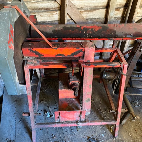 Vedbit kappsag for ved med pto for traktordrift. Pto-aksling medfølger. Saga er ikke brukt på mange år, men lagret innendørs.