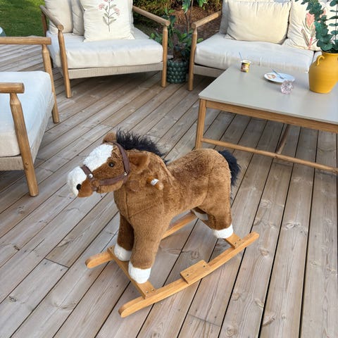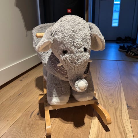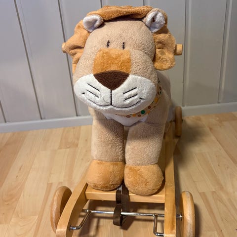 Gyngehest eller gyngegiraff med sete og hoftebelte