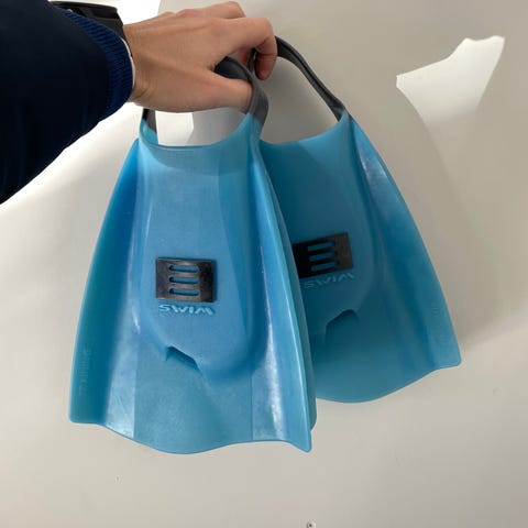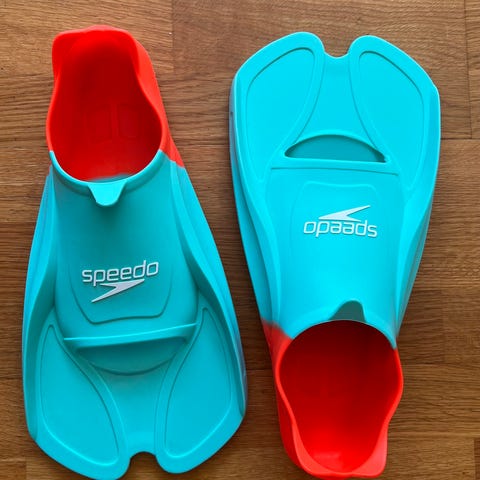 Zoggs svømmeføtter med kort blad i størrelse 35–36 (EUR), tilsvarende 2–3 (UK) og 3–4 (US). Modellen har lukket hæl og er laget i myk gummi for god passform rundt foten. Fargen er lys blå med mørkeblå detaljer. Egnet til svømmetrening og teknikktrening for barn eller mindre føtter i basseng eller rolig vann.
