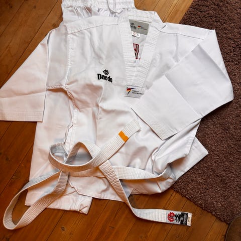 Fighter M1 kampsportdrakt for barn i hvit farge. Drakten består av jakke og bukse i vevd stoff tilpasset kampsporttrening. Størrelse er oppgitt som one size for barn. Egnet til ulike typer kampsporttrening der tradisjonell drakt benyttes.