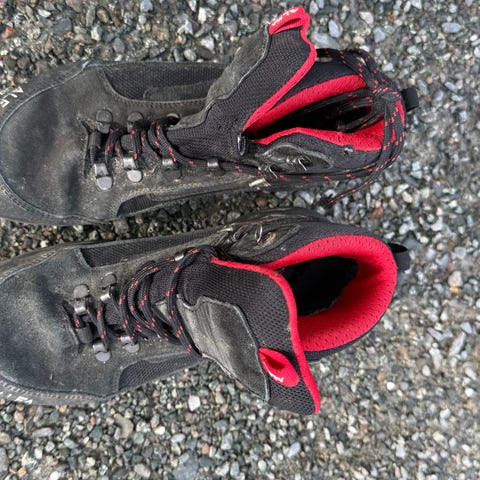 Lundhags i størrelse 39,5. Der store i størrelsen, men har alltid vært litt knapp for meg (bruker normalt 40,5). Har stort sett stått ubrukt og jeg innser at de ikke kommer til å bli brukt. Jeg kjøre de ny i 2002.