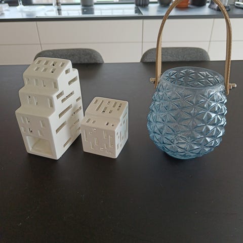 Telysholdere, lykt og vase