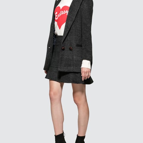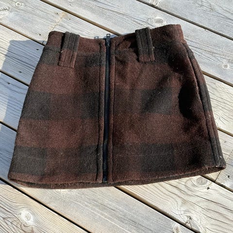 Ullskjørt fra Ganni i str 38. Bilde nr 2 viser riktig farge. Pent og lite brukt. Volangkant nederst. Hentes hjemme hos meg eller sendes mot porto