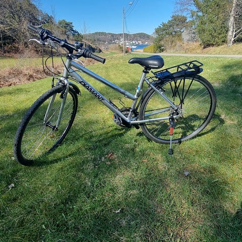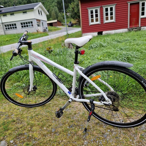 Sykkelen er kun brukt 2 ganger fordi jeg gikk over til Elsykkel. Kjøpt på G-Sport for 5999,-, og oppbevart i bod. Tidligere testvinner av sykler. Setet er godt å sitte på, og setet kan kan justeres. Gir fra Shimano Alivio,- 27 gir. Hydraliske skivebremser fra TekTro. Vekt 14.4 kg. Lett og stiv Ali-ramme/gaffel, og sterke lette hjul. En av markedets beste hybrider. Perfekt til helårs ‘ til og fra jobb’ sykkel. Må hentes.
