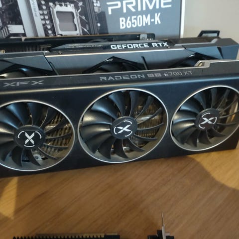 Selger et meget kraftig AMD Radeon RX 6900 XT med 16 GB VRAM. Kortet har stått i en server med god kjøling.