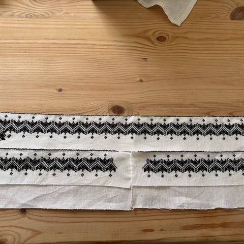 Umontert bol til Oleanagenser, strikket på fabrikken på Espeland der de også solgte deler som man kunne sette sammen selv. Disse to delene - for og bakstykke til genser - ble til overs etter mine prosjekt.