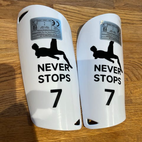 Selger uåpnet sett med legg skinn og fotball skeeves/sokker fra unisport