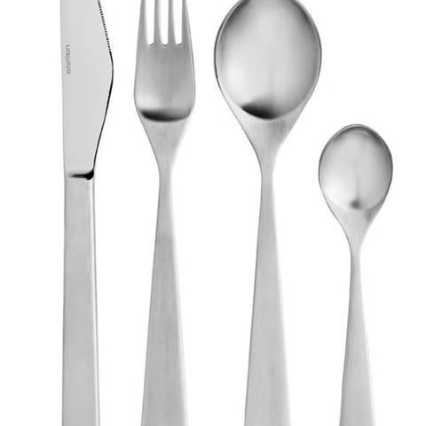Ett nytt og uåpnet Stelton Maya bestikksett i 24 deler og ett sett med salatbestikk i samme tilstand.