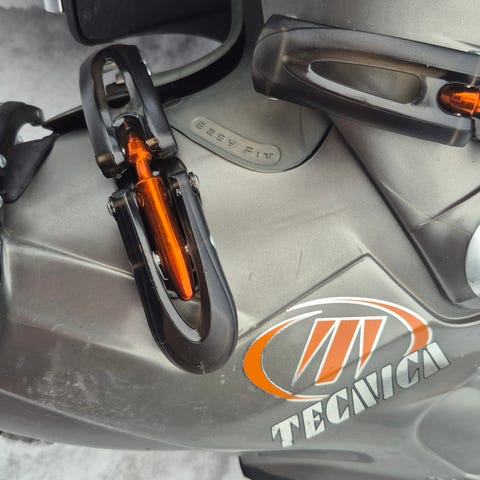 Salomon slalomstøvler i svart med fire justerbare aluminiums-spenner og powerstrap øverst. Innerstøvel i tekstil med polstring rundt ankel og legg. Såle med gummipartier og skrufester under. Passer til bruk med alpinski og standard alpinbindinger.