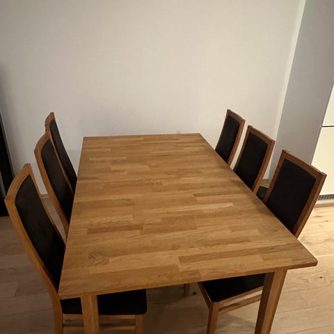 Godt brukt spisebord med stoler