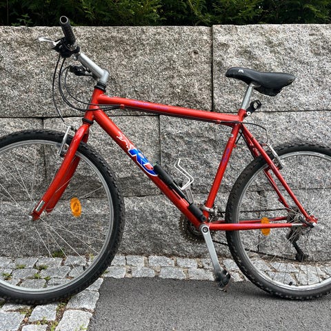 Sykkelen har stått inne i maaange år og bremseklosser er gamle og harde. Trenger en real service, men er et kult samleobjekt.