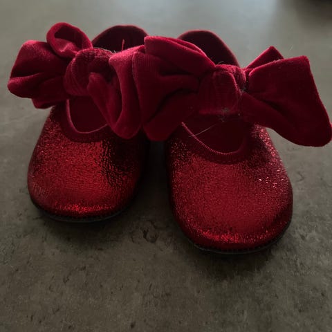 H&M babysko for jente i størrelse 18.-19 Skoene har lukking med rem og borrelås over vristen for bedre passform. Overdelen er i gullfarget materiale med dekorative detaljer. Myk innersåle og fleksibel yttersåle som passer til små barn som sitter, kryper eller er i tidlig gåfase.