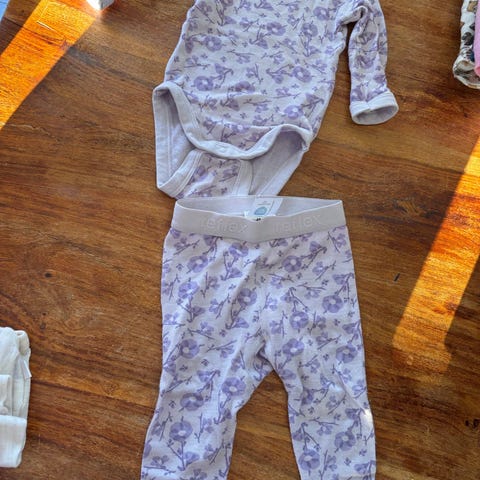 Nydelige Lil'Atelier sett til jente i størrelse 92. Settet består av plagg i mykt, ribbestrikket stoff med blomsterprint i flere farger. Som nytt.