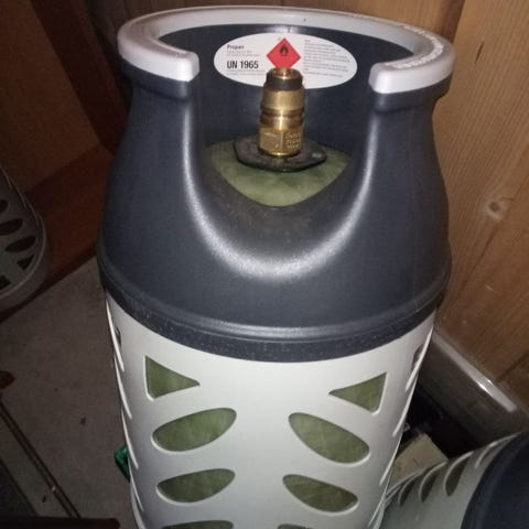 Gassflasker i stål og kompositt. En stålflaske, en hurtigkobling påmontert slange. Den andre. Kompositt. Flaskene er så godt som tomme. Selges samlet 750,- ev hver for seg 500,- 300,- og 100 for kobling på valgfri flaske.
