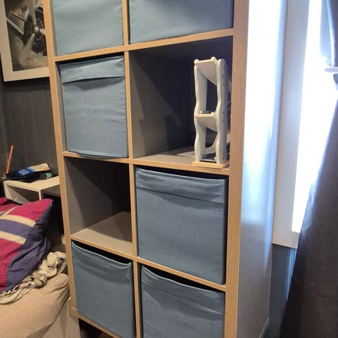 IKEA oppbevaringshylle med 6plastbokser til barnerom