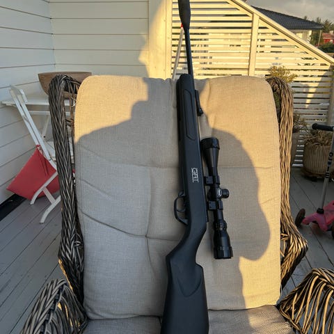 Selger kraftig luft våpen av typen gamo bigcat 1250, med kikkertsikte. Har skudd 30skudd med dette. Selges da det ikke brukes lenger. Noen blinker og skudd medfølger