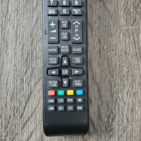 Samsung fjernkontroll til TV. Standard fjernkontroll med numeriske taster, navigasjonstaster, volum- og kanalstyring samt funksjonstaster for meny, kildevalg og mediekontroll. Passer til alle samsung tver.