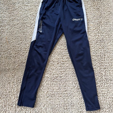 Craft treningsbukse for herre i størrelse M. Buksen er svart med kontrastfelt i sidene og har elastisk linning med snøring for justering av passform. Laget i lett, teknisk materiale som egner seg til ulike typer trening og aktivitet. Smal passform ned mot anklene gir god bevegelsesfrihet.