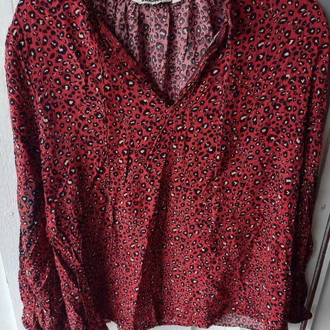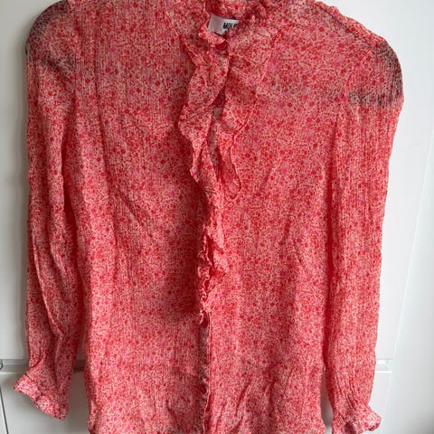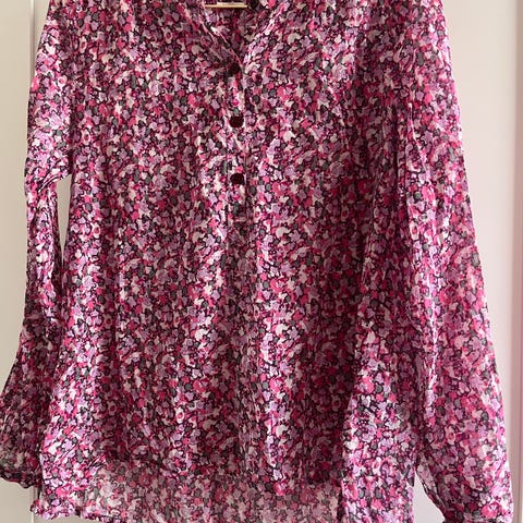 Pen vår og sommerbluse, som ny. Ballongermer og pene detaljer. Størrelse S.