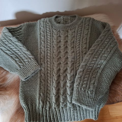 Hjemmestrikket nydelig genser. Ikke brukt. Str ca 3-6 år. Må hentes på Nedenes