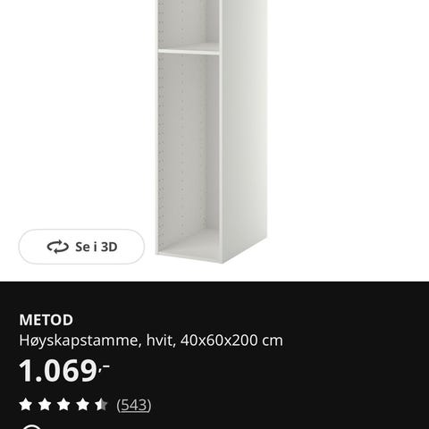 Ikea Metod høyskap 40*60*200 selges med grå dør og sort håndtak.