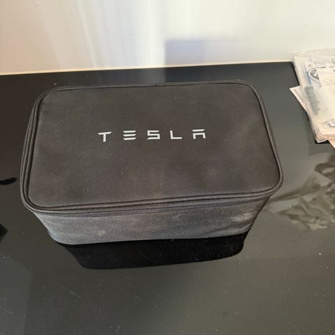 Helt ny Tesla ladekabel i svart veske. Kabelen leveres i original Tesla-bag med glidelås.
