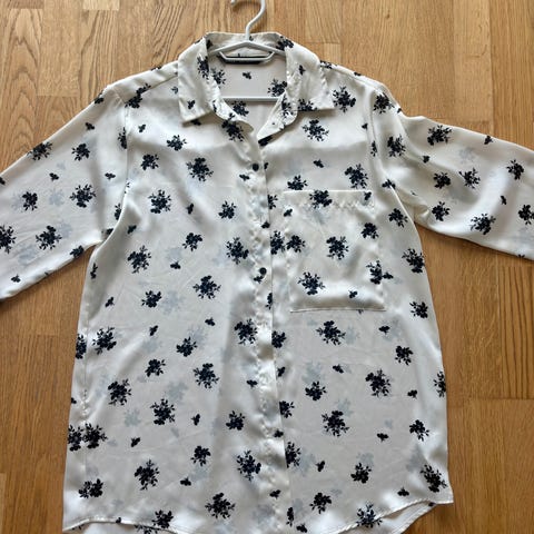 & Other Stories bluse i størrelse 36 for dame. Blusen er flerfarget med mønster på lys bunn. Materiale i viskose, som gir et lett og mykt stoff. Langermet modell med krage og knappelukking foran. Passer til både hverdagsbruk og mer formelle anledninger, og kan kombineres med både bukser og skjørt.
