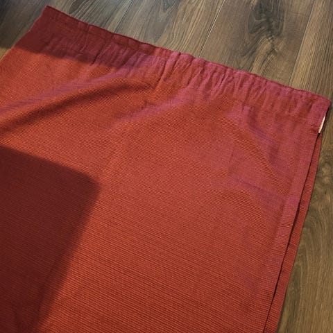 Kid gardiner i rød farge. Tekstilgardiner som egner seg til bruk i stue, soverom eller andre oppholdsrom. Stoffet har en jevn vevstruktur og gir et helhetlig uttrykk i rommet. Gardinene kan brukes alene eller sammen med andre gardinlag avhengig av ønsket lysinnslipp og skjerming.