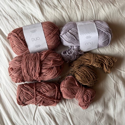 Ca 250 gr restegarn i Sandnes smart, utgåtte farger fra 2016