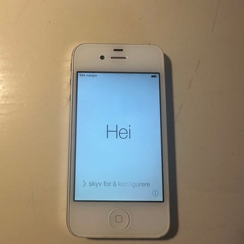 Apple iPhone mobiltelefon med 32 GB lagringskapasitet i hvit farge. apple ID fungerer ikke. Uten lader