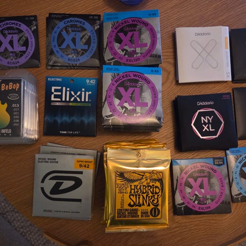 Selger unna det jeg har igjen av strenger fra banjo og gitar. Blir bare liggende, selges samlet