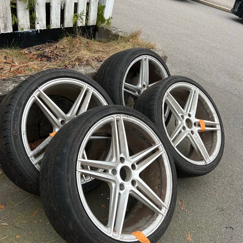 Tøffe men støgge felger selges. Ikke kast og sprekker. Men kantkjørt så det holder.