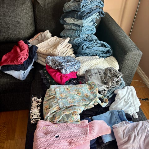 Stor klespakke selges til jente i hovedsakelig str 2-4 år. Klærne er pent brukt av mine tvillingjenter . Pakken inneholder blant annet 2 regnjakker fra reflex, 1 regnbukse med hele stropper(lite brukt regntøy), badetøy, mange gensere, bukser, t skjorter, noe ull, fleece, sommertøy, kjoler, skjørt osv. masse fint med masse bruk igjen. Flekker og nupper kan forekomme, men klærne er reine og fremstår veldig bra. Har bare lagt ved bilder av noe av plaggene siden det er så masse, bør sees! Det hele fyller ein blå ikea pose.