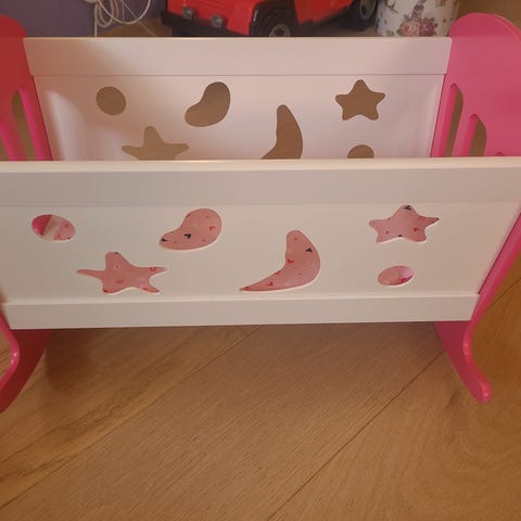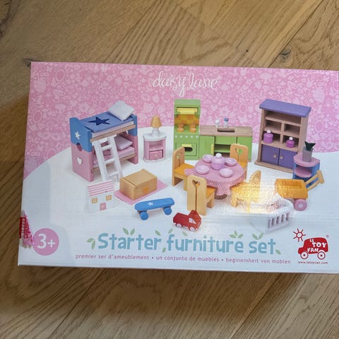 Helt ny køyeseng til dukker som også kan være 2 enkeltsenger. Eske bare åpnet for å se på om jeg skulle sette sammen og gi i gave, men ombestemte meg og pakket pent ned igjen. Pris for ny med rabatt 399,-, se bilde. Selges for 270,-. Sender ikke.
