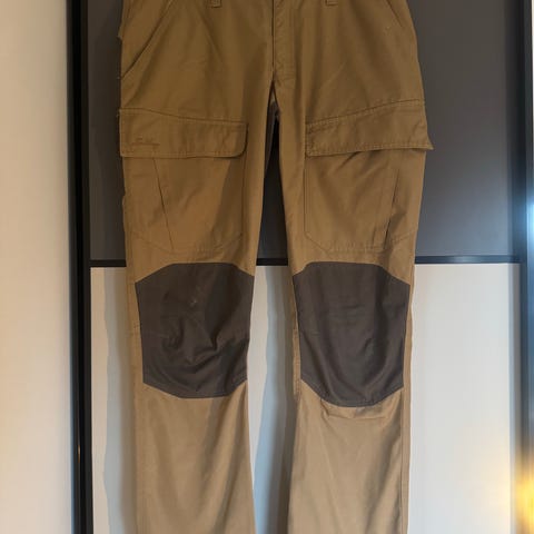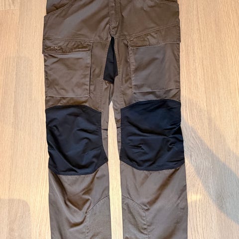 Lundhags turbukse i brun og svart farge. Buksen har forsterkede paneler på knær og sete, samt flere lommer på beina. Egnet til friluftsliv og turbruk. Størrelse 40. Materialet er et slitesterkt stoff som gir god bevegelsesfrihet under aktivitet utendørs.
