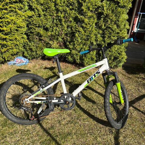 DBS Intruder barnesykkel med 20". Sykkelen har lavt innsteg i rammen som gjør det enklere å komme av og på. Den er utstyrt med skjermer foran og bak, støtte og gir bak.