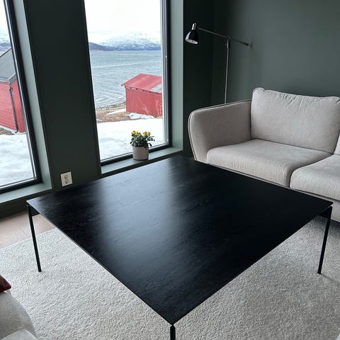 Bordet er i god stand, men har naturlige bruksmerker i overflaten som man må regne med på et mørkt bord. Det er stødig og tungt, noe som vitner om god, norsk kvalitet.