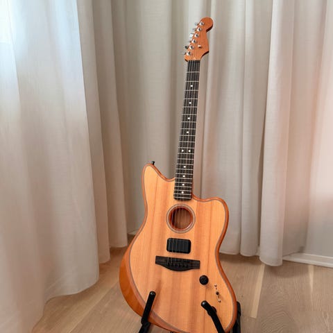 Flott elektrisk gitar til salgs! Bortsett fra litt lakk skade øverst på halsen, se bilde, er gitaren helt strøken uten riper osv. Nettopp vært inne på service hos 4 Sound i Stavanger. Original kasse følger med. Kjøpt ny12.9. 1996 hos Sagevik Musikk i Stavanger, kun en eier.