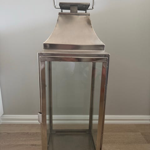 Sølvfarget lykt til lys. Litt rust inni