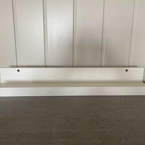 Hylle til barnerom selges. Fin til oppbevaring av bilder og bøker. L:60, h:18, d:14,5.