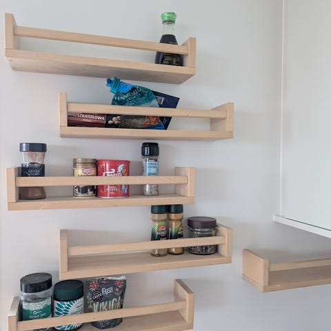 Søt hylle i tre, hvitmalt. Noe slitasje. Må hentes.