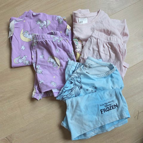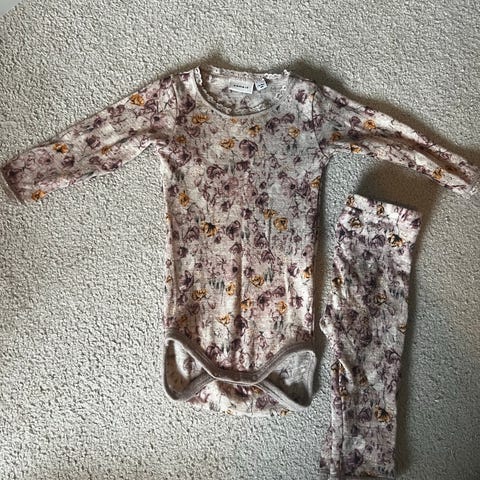 Veldig mykt og behagelig sett med t skjorte og bukse i str 4 år. Kan fungere som pysj, men vi har brukt i barnehage da det er så mykt og deilig stoff
