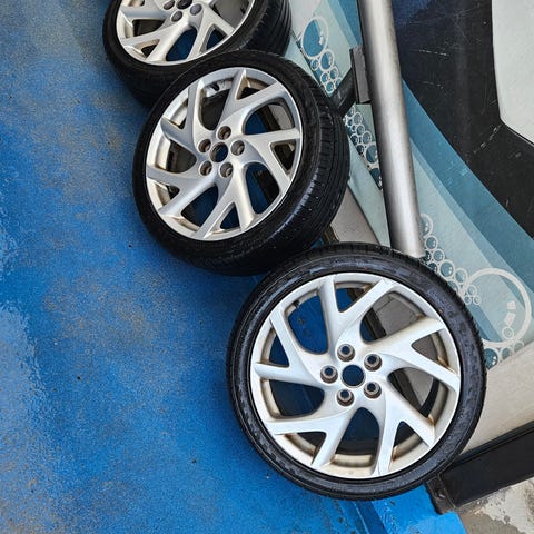 12 stk originale Mazda felger stått på Mazda 5 . 4 stk med piggfrie vinterdekk. 8 stk med sommerdekk. 1 sommer dekk ødelagt. Resten ennå brukbare. Selges samlet og må hentes Hvalstad. Kom gjerne med bud. Først til mølla prinsippet. Har også et kjørbart rep objekt Mazda 5 som skal bort. Skiboks med takstativ. Ei godkjent til 21