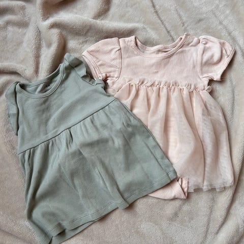 Sommerpakke, 3 t-shirts str 98/104, 3 shortser str , 98,98/104 og 110, skjørt 98/104. Selges samlet 🌸