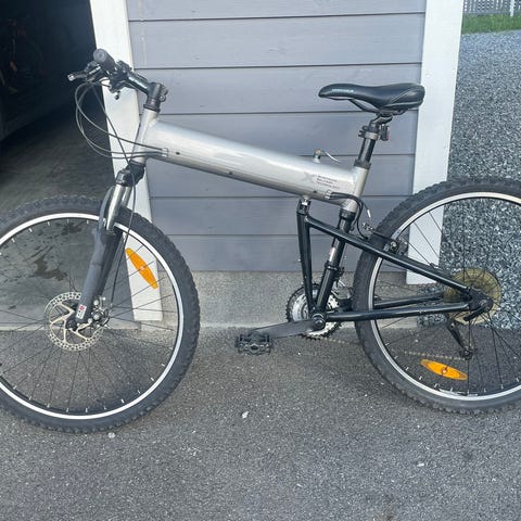 Sykkelen fungerer som den skal og har Shimano girsystem og skivebremser. Komfortabel å sykle med både foran og bakdemper.