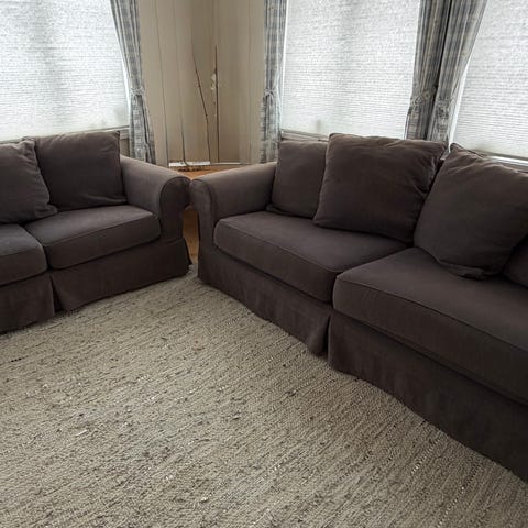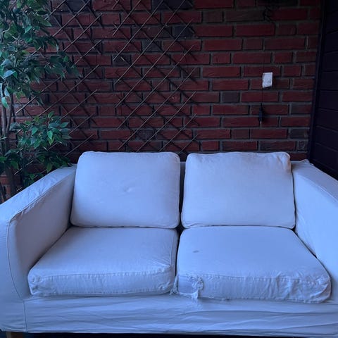 Slitt og ødelagt trekk, trengs nytt. Sofa rammen er ok. Finnes ikke på IKEA lenger m går å få tag på nytt trekk på annet nettside.