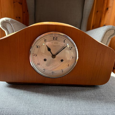 Robust bordklokkeurverk fra Hermle i typisk mid-century design.