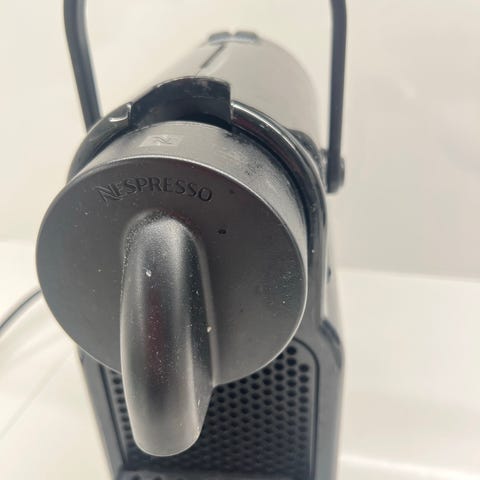 Nespresso kapselmaskin i svart. Maskinen bruker Nespresso-kapsler og har avtagbar vanntank på baksiden. Fronten har dryppbrett og rist som kan tas av for rengjøring. Egnet til tilberedning av kaffe og espresso hjemme eller på kontor. Maskinen har kompakt design som passer på kjøkkenbenk eller mindre kjøkkenområder. Kan hentes /sendes