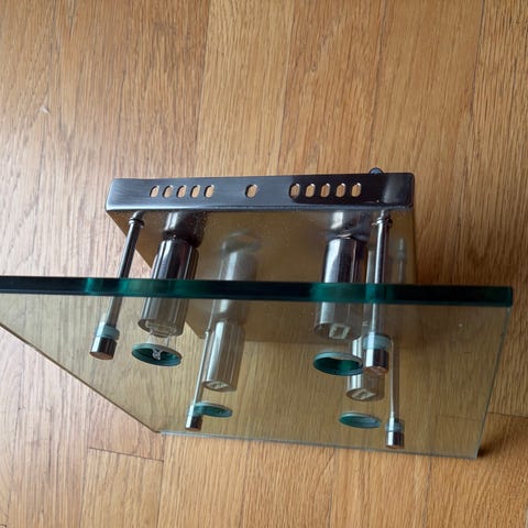 2 stk taklamper med 4x220 v stiftelser, krom plate med glassplate, pris per lampe