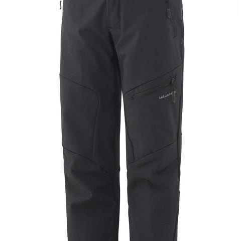 Buksa er laget i Gore-Tex-materiale. Den har forsterkninger nederst på bena og flere glidelåslommer. Snittet er tilpasset damefasong, med leddede knær for bedre bevegelsesfrihet.